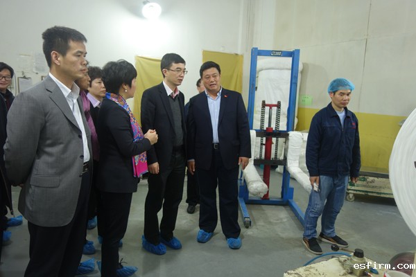 调研组一行参观兴泰无纺布医疗卫生用品生产车间