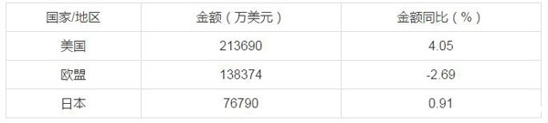 二是美国市场增量突出。2017年第一季度,我国家纺产品对美欧日市场出口42.89亿美元,同比增长1.22%,其中美国市场带动作用显著。对美国市场出口21.37亿美元,同比增长4.05%,增幅高于去年平均水平9.6个百分点。