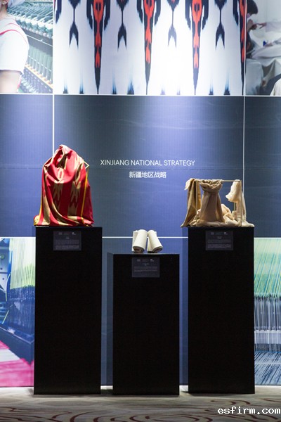 本次论坛形式多样,内容丰富,除了专业交流探讨以外,会场外还开设了中国新疆-欧洲纺织服装产业文化、新疆传统服饰、品牌女装静态展示空间。其中展出了艾德莱斯绸、欧洲织物、新疆传统服饰、特色驼绒纱线以及由深圳玛丝菲尔服装董事长及创意总监朱崇恽女士主导设计的系列女装,既彰显了绿色可持续发展的理念,还营造出了中欧纺织文化交融相映的浓郁氛围。