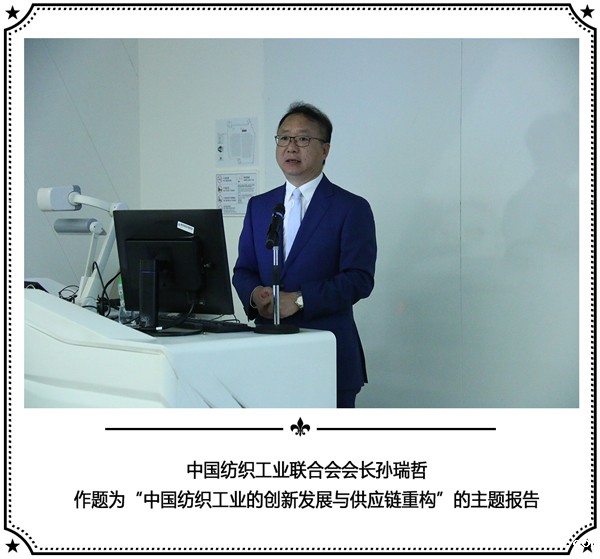 孙瑞哲在会上作了题为“中国纺织工业的创新发展与供应链重构”的主题报告,全面解读了中国纺织工业的创新发展成果、面临的新环境及未来的发展方向。他表示,当前中国纺织工业正处于转型升级的关键节点,创新成为行业发展的重要动能。 “十二五”期间,我国纺织工业的科技创新成效显著,主要表现在科研投入加大、科研成果丰硕等几个方面。未来我国纺织工业仍蕴含着巨大的发展潜力与市场空间,增长动力来自以庞大的经济体量与产业规模、完备的基础设施与产业配套为基础的稳定性力量,消费升级带来的巨大消费潜力、供给转型造就的巨大市场空间等增长性力量,以及日渐开放的对外格局、日渐完善的创新生态等应变性力量。同时,他用“虚与实,世界是原子的也是比特的”、“合与分,世界是一体的也是离散的”、“平与折,世界是平坦的也是波折的”、“同与异,世界是趋同的也是多元的”4句富有哲理的话高度概括了目前纺织工业所处的快速变化、深度关联、对立统一又充满未知的世界,并提出了创新驱动下的纺织工业的六大价值引爆点,即智能、体验、共享、责任、即时和信用。最后,他指出,技术创新是打造“新三板”、重构供应链的关键支撑,要达成此目标,需从夯实基础能力、蓄积发展势能,聚焦材料技术、提升价值含量,深化智能制造、改善行业质效,发展绿色生产、实现可持续发展等4个方面发力。