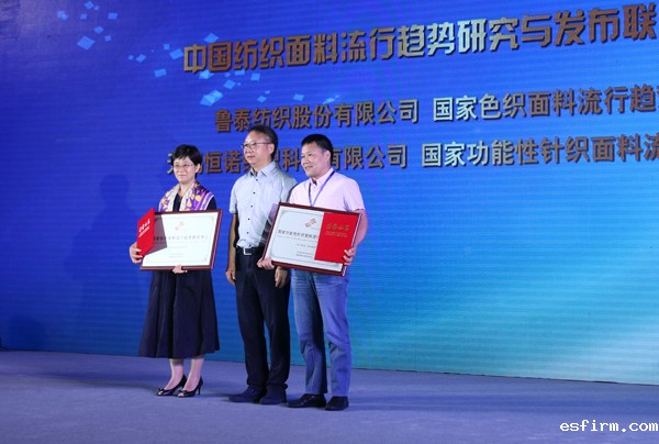 在两场授牌仪式上,鲁泰纺织股份有限公司、无锡恒诺纺织科技有限公司,分别被授予“国家色织面料流行趋势研究中心” 、“国家功能性针织面料流行趋势研究中心”荣誉,标志着两家企业正式加入“中国纺织面料流行趋势研究与发布联盟”。浙江瓦栏文化创意有限公司被授予“中国纺织面料(图案)流行趋势研究与发布联盟战略合作伙伴”荣誉。