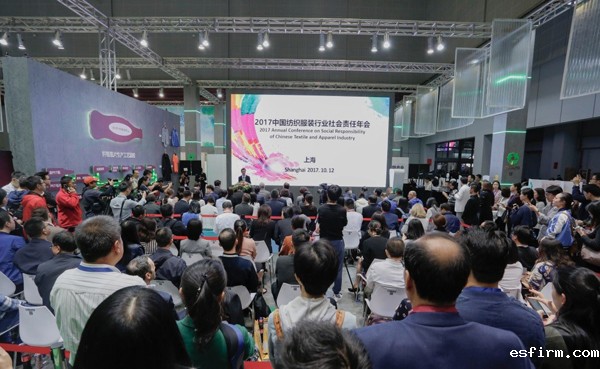 2017中国纺织服装行业社会责任年会于2017年10月12日在上海顺利召开,此次会议现场设置在2017秋冬中国国际服装服饰博览会可持续发展专区会议区,与展商和观众互动热烈,盛况空前。