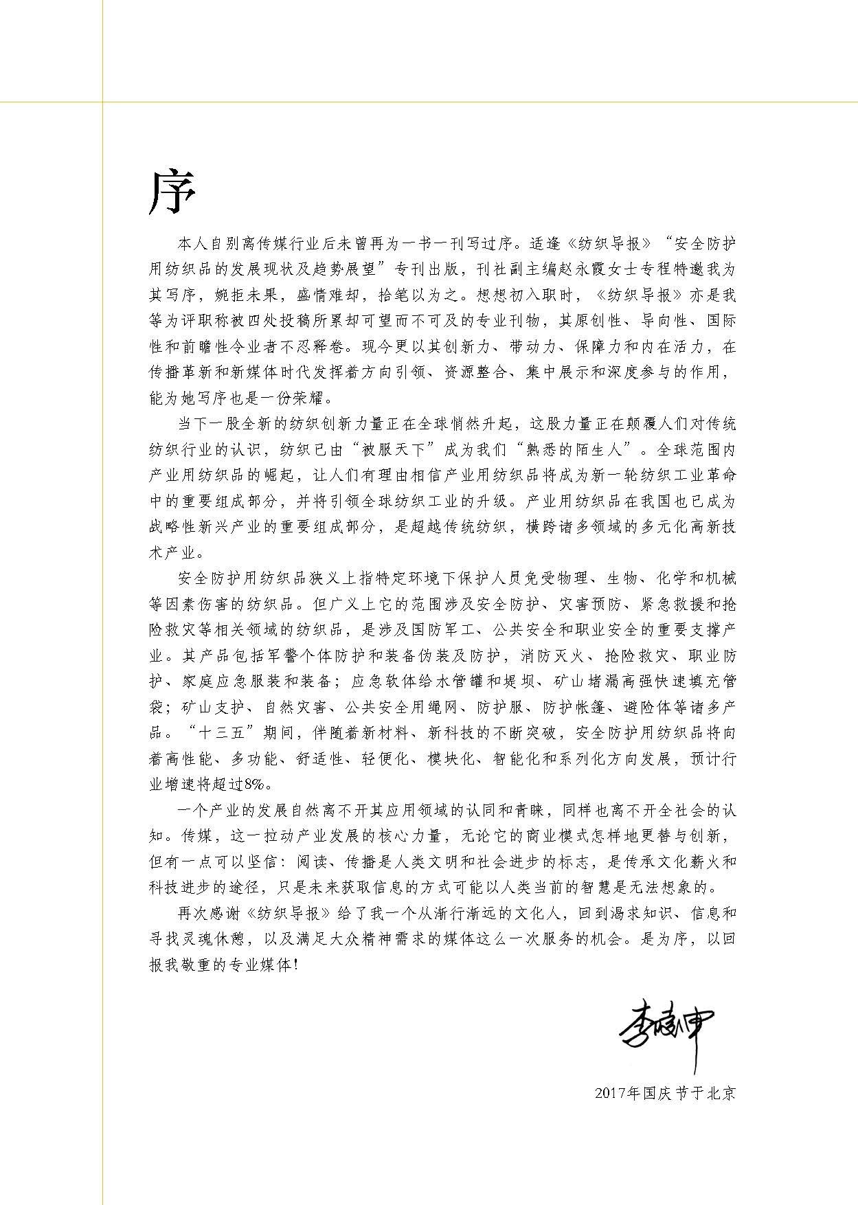 本刊特邀伟德app官方正版下载地址副会长、中国产业用纺织品行业协会会长 李陵申 为【专刊】写序,并解读“安全防护用纺织品的新特点”。