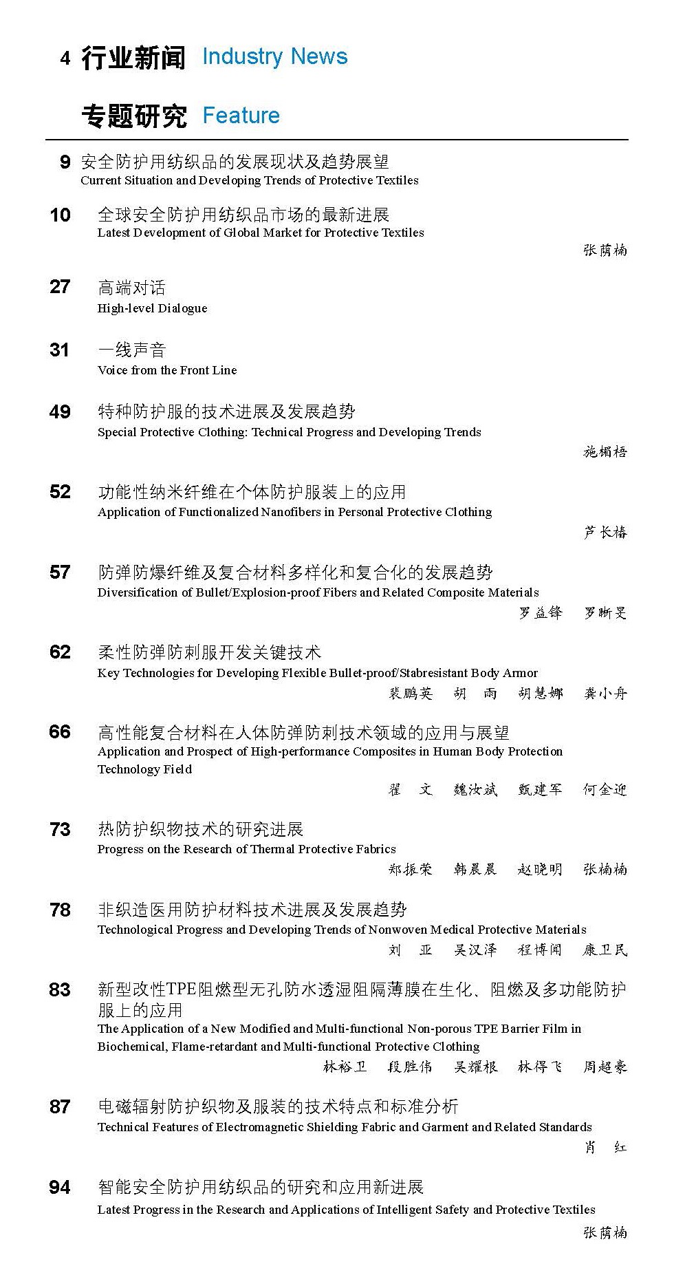 安全防护用纺织品是产业用纺织品的重要内容,亦是涉及国家公共安全及应急处置产业、“军民融合”战略下新兴产业与民生产业发展的重要一环,发展前景看佳。现阶段,我国安全防护用纺织品产业虽已取得了一定发展,且仍保持着世界领先的增长速度,但也面临着诸多挑战。为此,本年度专刊特以此为主题,探究了安全防护用纺织品领域的现状和未来,以为我国相关产业的发展提供借鉴和参考。