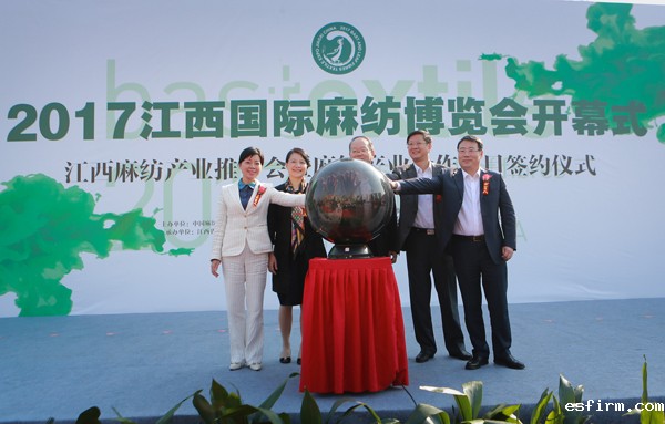 伟德app官方正版下载地址党委书记、秘书长高勇,江西省政府副秘书长宋迪维先生,江西省商务厅副厅长、省贸促会会长刘翠兰女士,江西省工信委副主任刘煜先生,新余市委副书记曾萍女士共同按启2017江西国际麻纺博览会开幕启动球