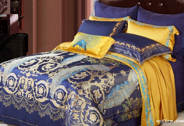 “雀舞芳华”真丝床品面料以100%优质桑蚕丝为原料,采用先进数码提花织物CAD设计和CAM织造技术,通过对织物纱线色彩、组织结构和工艺处理等方面创意设计,结合精巧的剪裁,华美的绗缝,精湛的绣花,呈现出匠心独运、色彩华丽、构图丰富、充满文化艺术气息的时尚床品。