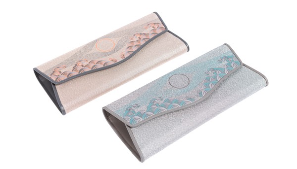 “汇流迎贵”宋锦晚宴包所用面料采用高纬密超细旦桑蚕丝,结合宋锦超精细渐变织造工艺,实现宋锦与缂丝两种非遗技艺的碰撞与交融;包身面料经纳米整理,塑形持久,防污、耐磨性俱佳;外观图案将杭州山水以简笔艺术形式绘制于包面,无形之中将源远精深的水文化娓娓道来。