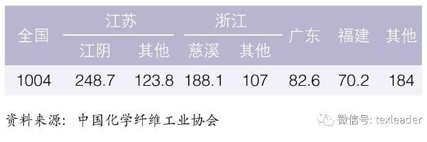 2017年中国再生PET纤维产能分布情况(万t/a)