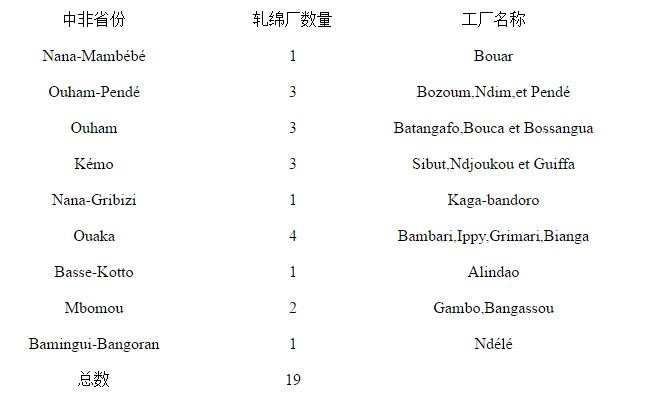 1970年,中非政府拥有19家轧棉厂,而现在只有2012年建成的Bossangua一家轧棉厂还在运营。