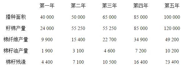 加大投入后的籽棉及其衍生产品产量一览表(单位:吨)