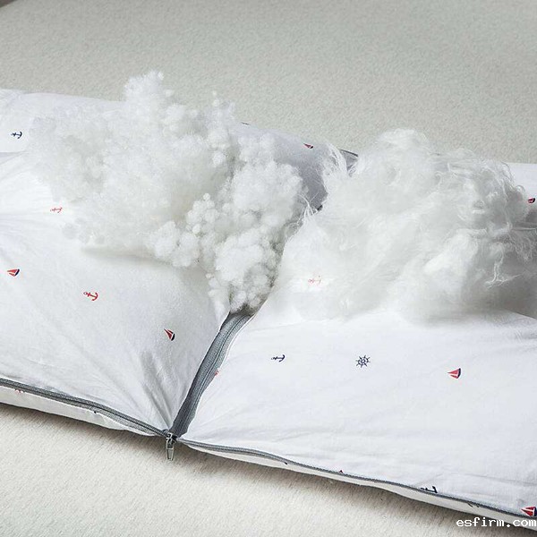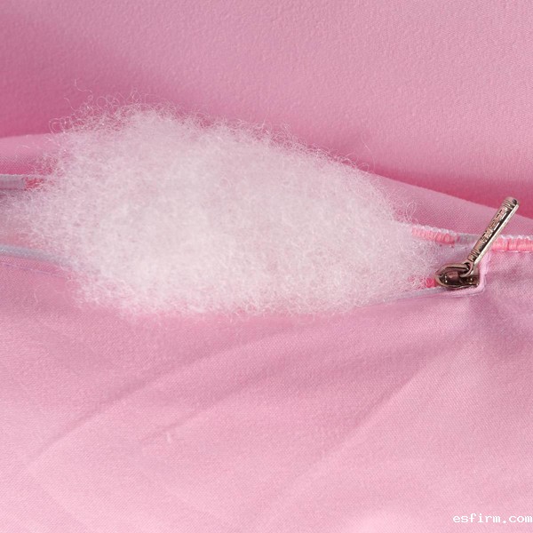 如枕芯填充材料——简单开松的三维卷曲中空纤维、开松+摩擦处理的珍珠棉、开松+梳理处理的公仔棉和无胶棉等;
