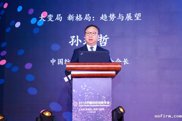 孙瑞哲在会上作题目为“大变局 新格局:趋势与展望”的主旨报告,他以全球化的视角,对改革开放四十年中国纺织工业取得的巨大成就进行了全面系统的梳理。他指出,世界正经历百年未有之大变局,经济发展呈现不确定性、不对称性与不稳定性的特征。可以概括为四大关键词:一是融合,世界经济深度关联;二是制衡,利益格局更趋复杂;三是刷新,产业生态快速演变;四是重塑,知识经济重塑格局。新形势下,中国经济稳中有变,但经济健康稳定发展的基本面没有改变。中国正在形成高质量的发展格局、高潜力的消费格局、高水平的开放格局、高强度的创新格局和高效率的市场格局。