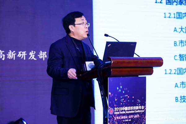 罗莱生活科技股份有限公司高新研发部总监宫怀瑞从行业技术创新现状及发展趋势的角度进行了题目为“技术创新驱动家纺行业发展”的演讲。他指出,目前国内的家纺市场大部分企业仍处于花型、款式为主外观提升阶段,市场主流产品仍处于传统材料和工艺技术水平,智能睡眠产品未能完全满足健康睡眠需求。他介绍道,功能性家纺产品开发创新主要体现在功能性纤维材料家纺产品、结构性功能家纺产品、智能升级换代产品的开发上,如抗菌防螨、远红外、柔性填充物、零压床垫、睡眠监测产品、睡眠环境调节系统等。生态家纺产品开发主要应用天然功能改性纤维如薄荷纤维、草珊瑚纤维等,以及植物绿色印染技术、生物功能性纺织染整技术。智能化技术在工厂以智能被芯悬挂生产线、家纺专用吊挂系统生产线等智能生产以及智能检测、智能物流、仓储系统的配套应用,提高了生产效率及质量稳定性。