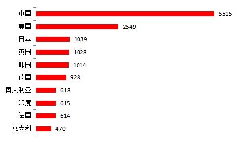 2010—2017年碳纤维论文与专利Top10国家或地区