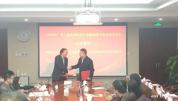 发布会上,新闻媒体代表分别发言,表示新闻奖“双十佳”评选活动意义重大,希望能够持续开展,通过评选评优过程体现记者的行业价值,在“十佳记者”推荐上严格把关,“十佳作品”报送上精选优选,让奖项得到行业认可。在众多媒体记者的见证下,孙淮滨和石敬峰现场签订了“沭阳杯”第八届全国纺织行业新闻奖评选活动合作协议。高勇在发布会总结中,对纺织行业整体情况作了介绍,对行业新闻宣传工作提了要求,鼓励记者要坚守职责,不断通过学习提高专业水平,以科技、绿色、时尚定位讲好行业故事,以创新思维和写作方式叙述行业卓越成绩。