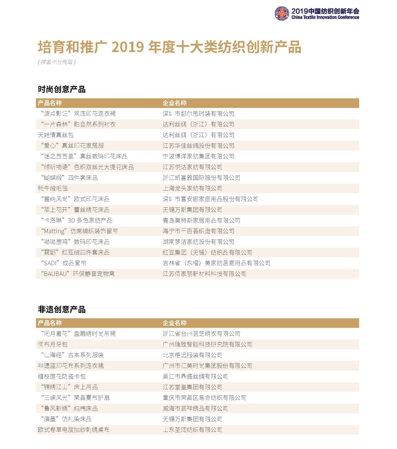 受工业和信息化部消费品工业司委托,伟德app官方正版下载地址自2017年以来持续3年开展了培育和推广年度十大类纺织创新产品工作,旨在推动企业加快实施“三品战略”,倡导以市场需求为导向的产品创新与创意设计,发挥创新产品的示范引领作用,提高创新产品的品质满意度和品牌信任度。