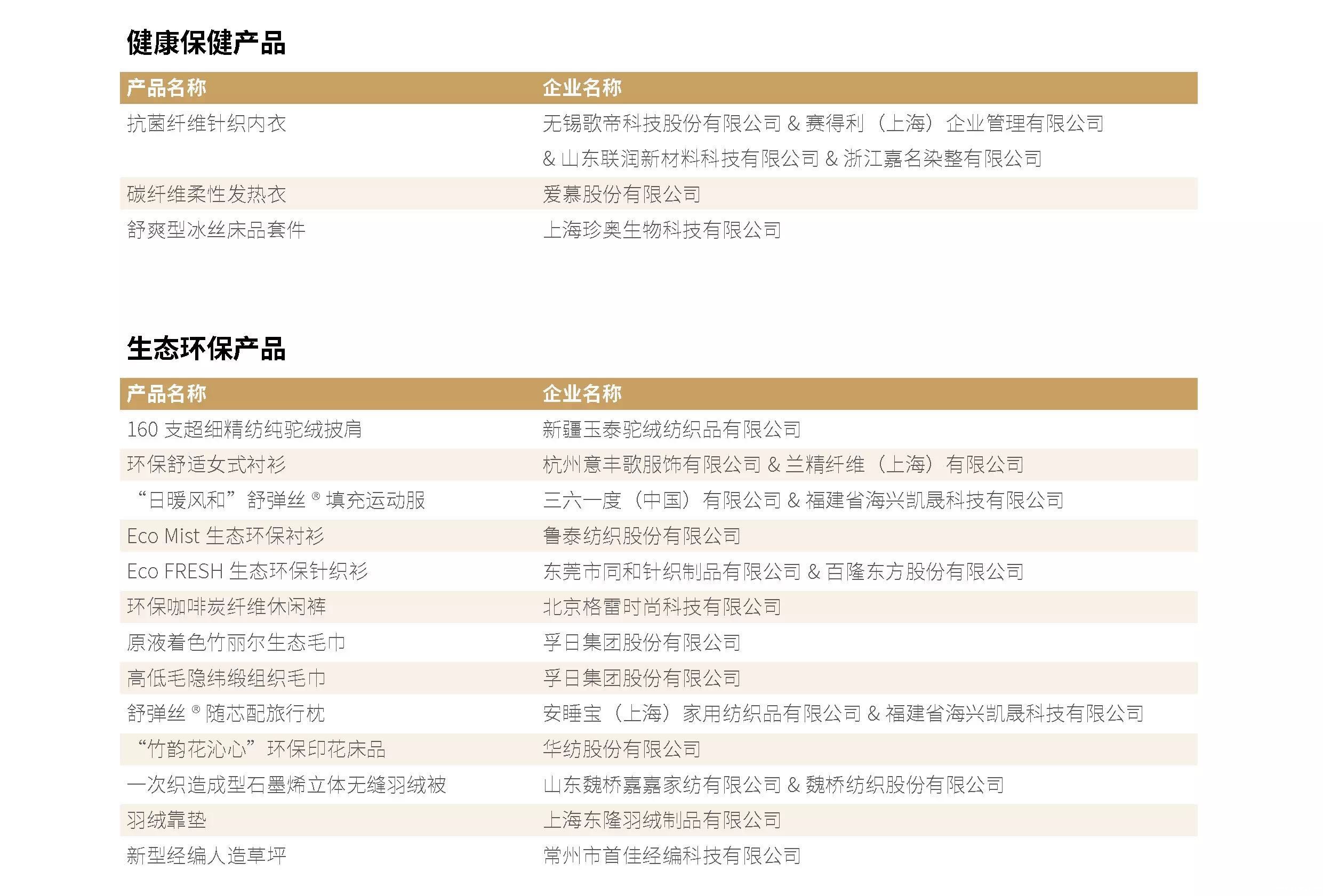 3年的持续开展,评选工作围绕时尚创意产品、非遗创意产品、智能科技产品、舒适功能产品、运动功能产品、医疗卫生用功能产品、易护理产品、安全防护产品、健康保健产品和生态环保产品等十大品类,从产品设计创新、产品技术创新、产品品质保证、生态环保特性、市场应用特性等几个方面进行综合考量,以专业视角发掘了一大批具有科技、时尚和绿色创新力的服装、家纺及产业用终端消费产品,引领了创新产品的市场消费新风尚。