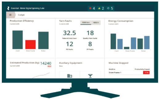 ESSENTIAL将数字化技术与立达所拥有的四种纺纱流程的专业知识完美结合,提升纱厂员工专业技能,显示改善环节,优化资源分配以及机器和流程的设置。