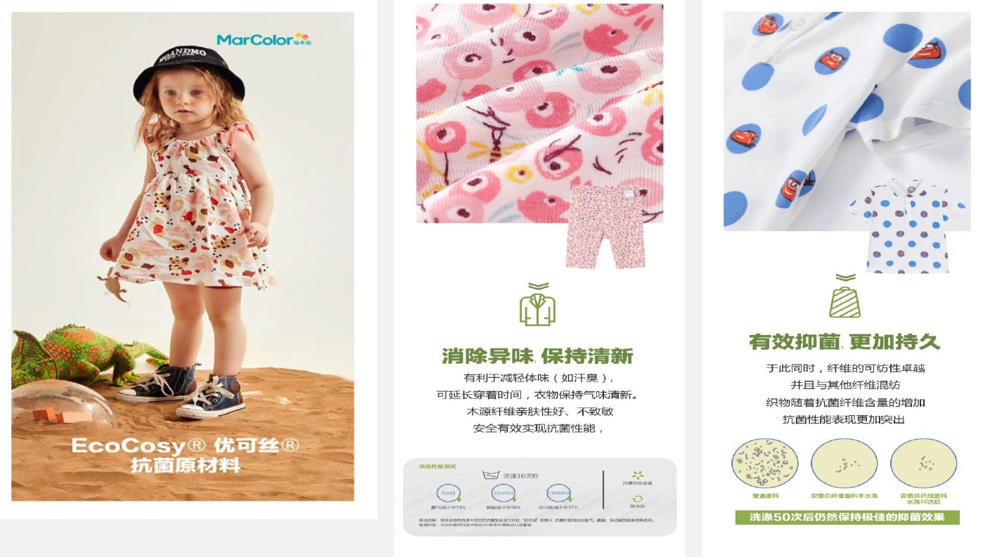 赛得利与马卡乐童装联合推出了抗菌儿童T恤,一经上架就销售一空,还经过了多次返单销售,由此可见抗菌类产品的市场热度。
