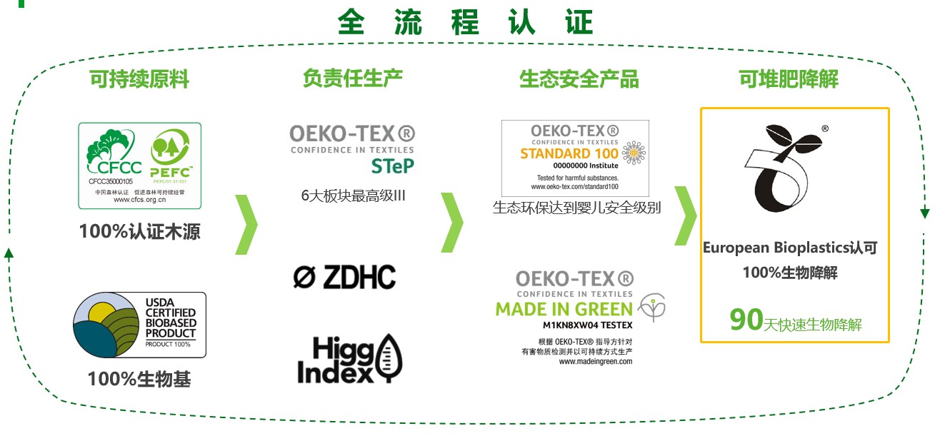 赛得利非常重视环保可持续方面的投入,不仅通过优化生产工艺,使废水、废气、废料的排放大大降低,符合相关生态环保认证的要求,而且开发出利用消费前或消费后纤维素纤维回收再生的再生纤维,此外,优可丝®BV纤维还通过了90天内快速堆肥降解的相关认证。