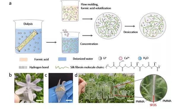 随着柔性可穿戴设备快速发展,电子皮肤成为应用于人机交互界面的重要材料,其安全性变得十分重要。近日,上海科技大学的研究团队以天然蚕丝蛋白和钙离子为原料,制备了一种透明、可拉伸、可自修复、高安全性的导电电子皮肤材料,这种材料具有良好的阻燃特性。该研究团队深度探究了其阻燃机理,并开发了一种在极端条件下可以通过无线信号传递信息的预警系统,为进一步设计新型离子皮肤、提升可穿戴设备的安全性提供了新思路。