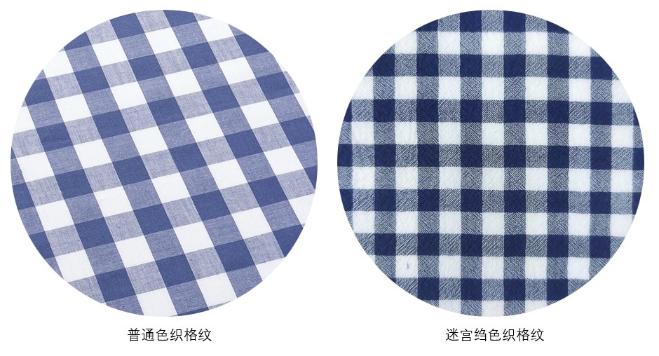 作为一种新型工艺,迷宫绉面料的开发还有许多值得探索的方向,比如对纱线的种类、纱线线密度、捻度、捻向以及纱线的花色进行不同搭配,可能得到意想不到的效果。多样化不同元素组合的迷宫绉产品将是高档纯棉迷宫绉色织面料开发的下一步发展方向。比如,将迷宫绉与格纹结合在一起还可以得到舒适透气的夏季格纹面料。