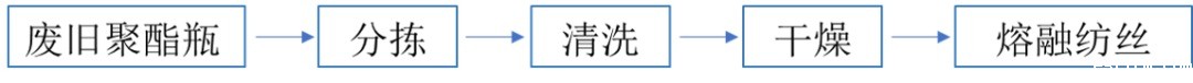 物理法是指将废旧聚酯材料经分拣、清洗和干燥等工序后作为原料直接进行熔融纺丝的再生方法。