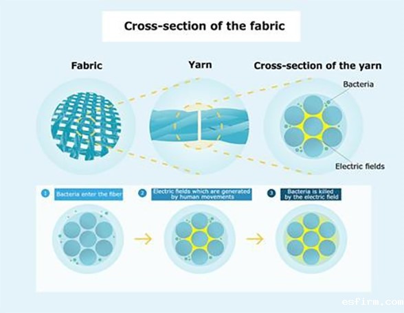 日本帝人与村田制作所研发出施加力后能产生电能、发挥抗菌性能的压电纤维“PIECLEX”。该纤维以PLA为原料,可将人体活动产生的力等转换为电能,进而发挥抗菌性能。在使用生物质原材料的基础上,不添加任何化学抗菌剂,绿色环保,安全健康,是对传统抗菌纤维制备方式的又一次颠覆。