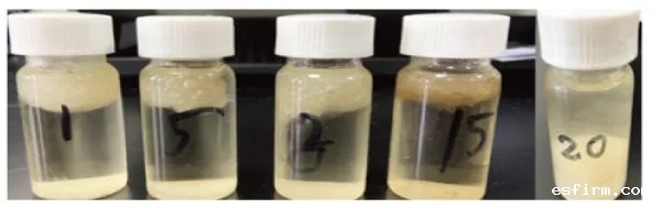 b 聚甲基丙烯酰胺接枝增重的蚕丝丝绵溶解后状态