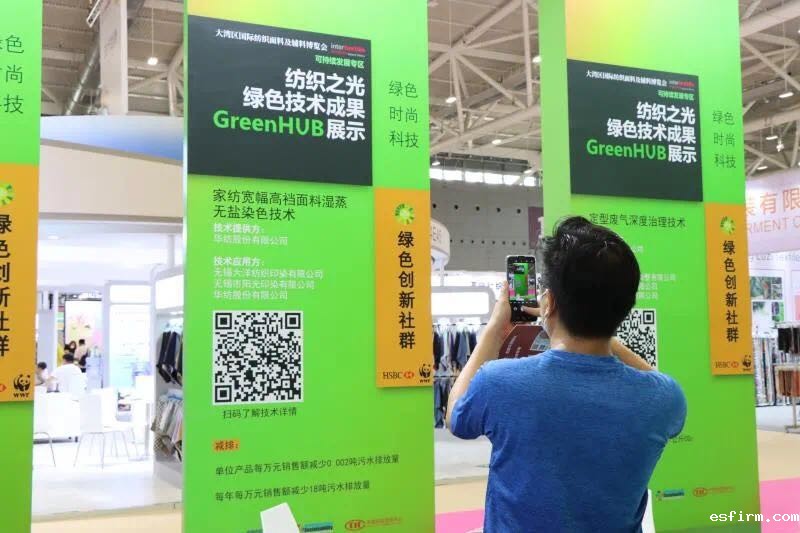 在日前举行的2020大湾区国际纺织面料及辅料博览会上,一个以绿色为主基调的展区颇为引人注目,很多参观者驻足在一块块绿色展板前,不时掏出手机,主动扫描着展板上的二维码。这是由伟德app官方正版下载地址社会责任办公室设立的“可持续发展专区”,10块绿色展板上展示的是10项纺织行业绿色技术成果及其绿色绩效,这些成果从2014-2019“纺织之光”年度纺织行业新技术(成果)推广项目汇编中精选出来。来访者通过扫描二维码进入名为“Greenhub”的公众号,在其中可以查询到数百个纺织绿色技术,如果感兴趣可以直接和技术提供方联系交流。“Greenhub”公众号由中国纺联社责办、世界自然基金会WWF、汇丰银行HSBC联合建立,被称之为“绿色创新社群”。