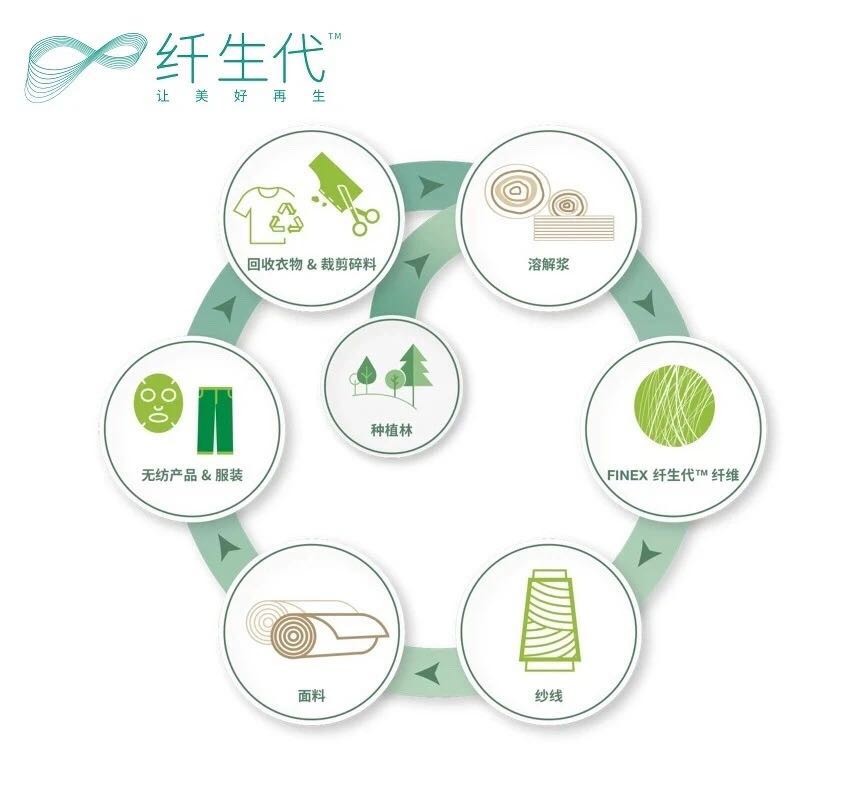 今年,赛得利还推出了全新的绿色纤维——莱赛尔与纤生代TM,进一步丰富了赛得利的纤维产品组合。赛得利莱赛尔采用了全新的自主研发技术,力求为客户提供世界一流的品质。经多方测试,赛得利莱赛尔纱线在成纱强力、CV控制、生产效率上都有良好表现,一经推出就得到了上下游伙伴的广泛关注。同时,主打循环再生的FINEX纤生代TM纤维也在今年全线推出,FINEX纤生代TM拥有与以原生木浆为材料的优可丝®纤维媲美的舒适性,为环保面料开发提供了更多的可能性和市场竞争优势。