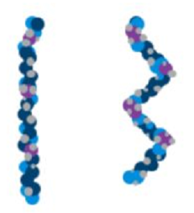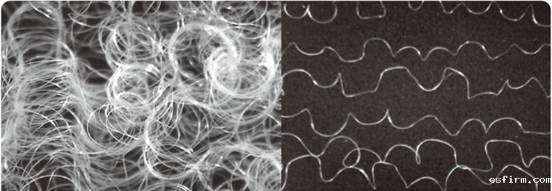由于PDO的引入,PTT纤维大分子结构上有了3个亚甲基-CH2-,空间结构上呈波浪形,与直线链状的PET复合之后,两种聚合物在相同的机械加工和热处理条件下产生不同的收缩量,从而绕纤维轴产生螺旋状卷曲,在空间上呈现类似弹簧的卷曲。