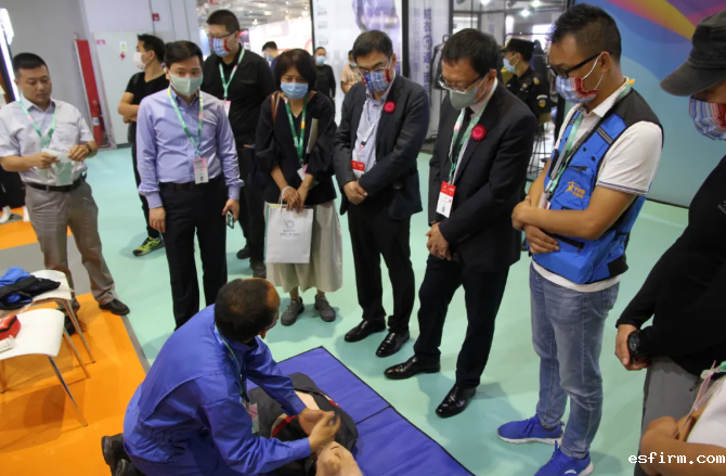 “纺织之光”家庭应急科普展示专区是由纺织之光科技教育基金会组织的、围绕“纺织品在应急、防疫、救援领域应用展示”和“纪念钱之光同志诞辰120周年”主题,开展的家庭防疫应急科普宣传与观众体验互动活动,旨在推广纺织行业公益事业,搭建纺织行业公益交流与合作平台。在活动现场,来自平安星减防灾教育中心的教官分别对应急逃生、防护服穿着、应急包扎、简易担架制作等家庭应急知识进行了介绍和操作演示。