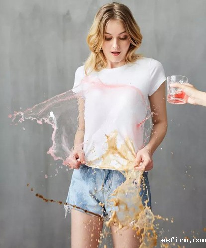 易去污类产品也是采用氟碳树脂类进行浸轧、焙烘整理,整理后面料的亲水性得到改善,整理剂的非离子型亲水基团伸展在外,从而使织物在洗涤过程中油污易于脱离,而且减少回沾。