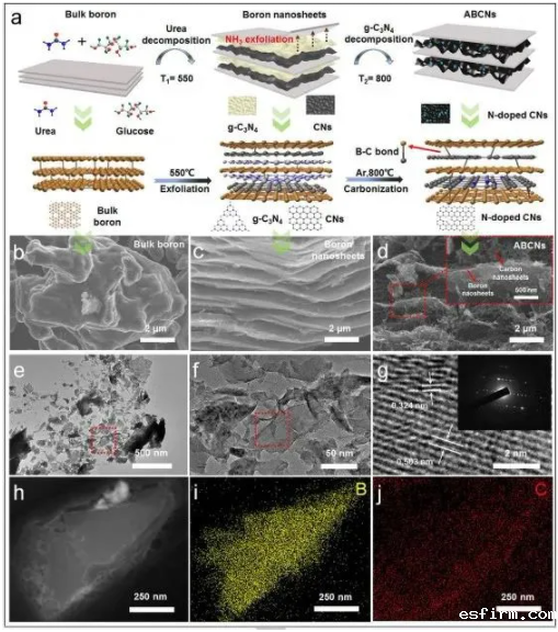 ABCNs的合成原理以及块状硼、硼纳米片、ABCNs的形貌