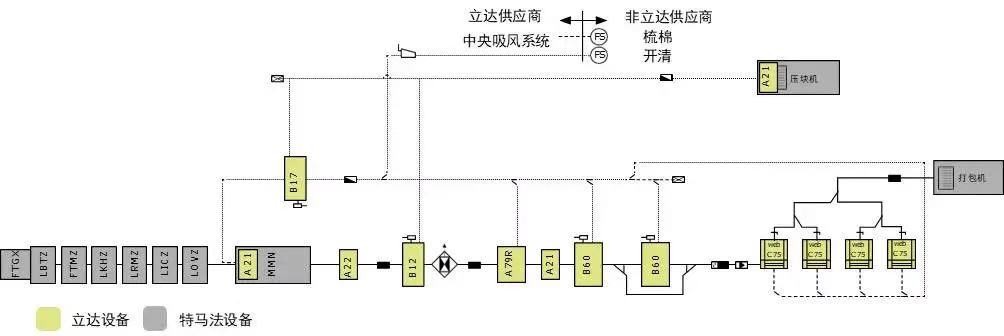 通过特马法和立达机器,原料在不同的开清阶段去除杂质,然后棉型化原料进入打包机。在该过程中,精清棉机UNIflex B 60负责确保纤维原料具有与棉相同的长度、细度、含杂率和纺纱特性,并可通过调节钳口设置所需的纤维长度。