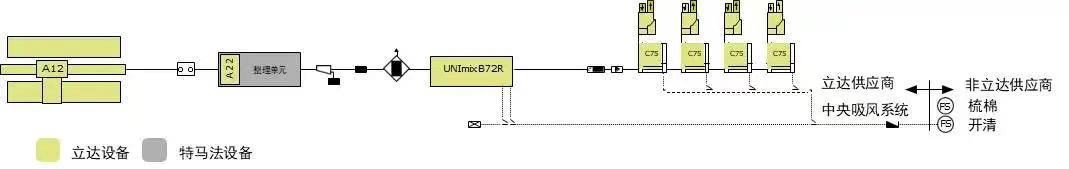 从棉包中均匀地抓取开松原料,为后续机器准备理想的棉束尺寸。就混棉而言,采用三点混合原理的多仓混棉机UNImix B 72是理想的混棉机器。储棉量大,确保无故障连续生产。根据待生产的纱线支数,梳棉机之后配置带自调匀整的并条模块,足以满足100%亚麻的加工需求。如果与棉或化纤混纺,则需要不同的纺纱准备工艺,并涉及到精细混棉机UNIblend A 81的使用。根据质量要求,梳理后设置一道或两道并条机。