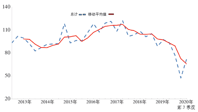 意大利纺机按不变价值计的订单指数(基数:2015年=100)