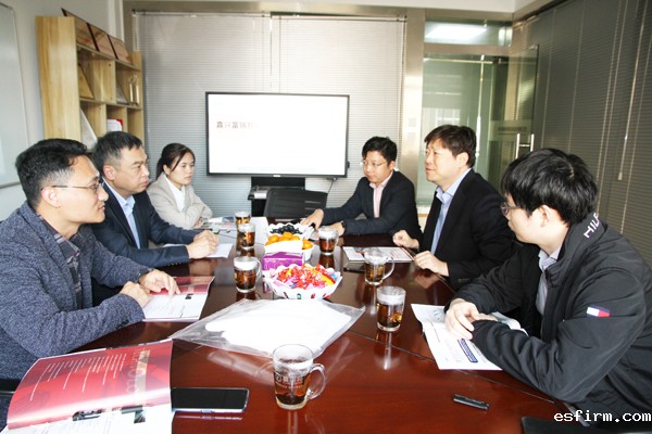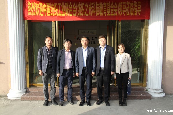 纺织之光科技教育基金会理事长叶志民(中)带队前往富瑞邦公司进行获奖项目回访