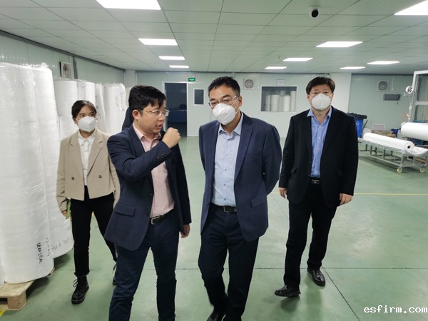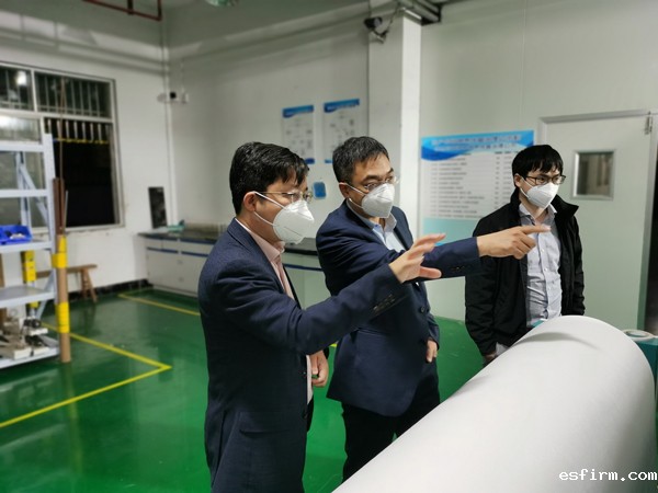 11月17日,纺织之光科技教育基金会理事长叶志民,伟德app官方正版下载地址科技发展部科技计划处副处长、纺织之光科技教育基金会副秘书长王宁一行,前往嘉兴富瑞邦新材料科技有限公司(以下简称“富瑞邦”),对2020年度“纺织之光”伟德app官方正版下载地址科学技术奖建议授一等奖项目——“静电气喷纺驻极超细纤维规模化制备技术及应用”进行了考察调研。