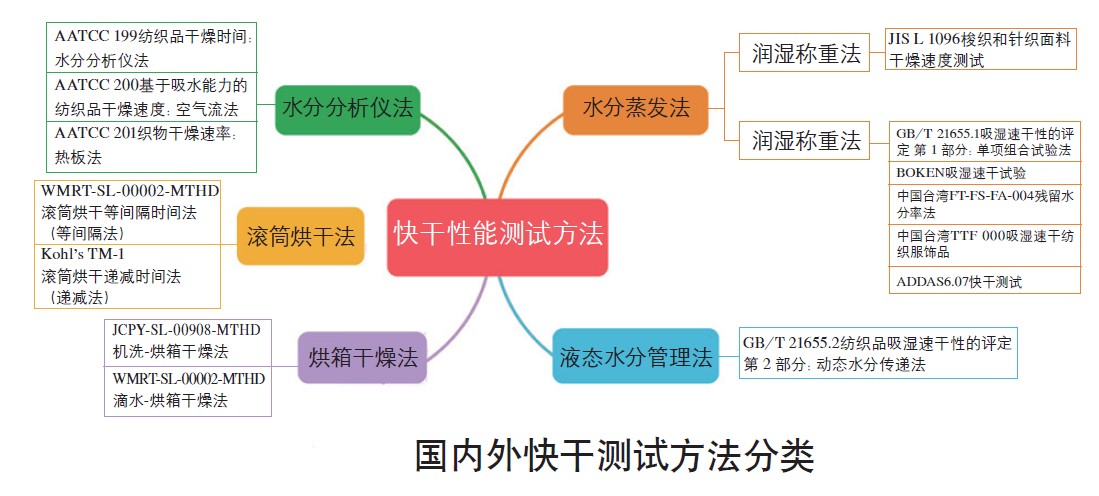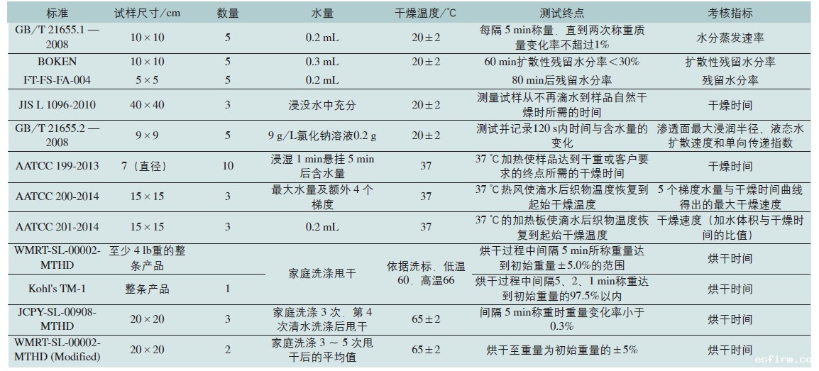 因产品的纤维成分、组织结构、吸水性能以及实验环境、实验方法等都可能对快干性能测试结果产生影响,所以除了要考虑产品的性能、出口市场或买家的要求外,还要综合考虑消费者的使用习惯等因素,慎重、合理地选择测试评价标准,才能对样品的快干性能做出准确的评价。