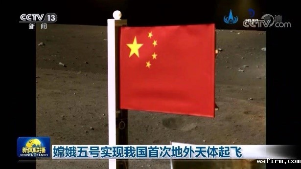 北京时间12月3日晚23时10分,嫦娥五号月球探测器在圆满完成48小时工作任务后,实现高难度的首次“地外天体起飞”,顺利飞离月球表面,起飞回家。不仅如此,中国首次在月球上成功展示“织物版”五星红旗。点火起飞前,着陆器上升器组合体实现月面国旗展开以及上升器与着陆器的解锁分离。这是我国在月球表面首次实现国旗的“独立展示”,与“嫦娥三号”“嫦娥四号”以及玉兔月球车上的国旗采用喷涂方式不同,“嫦娥五号”国旗是一面真正的旗帜。