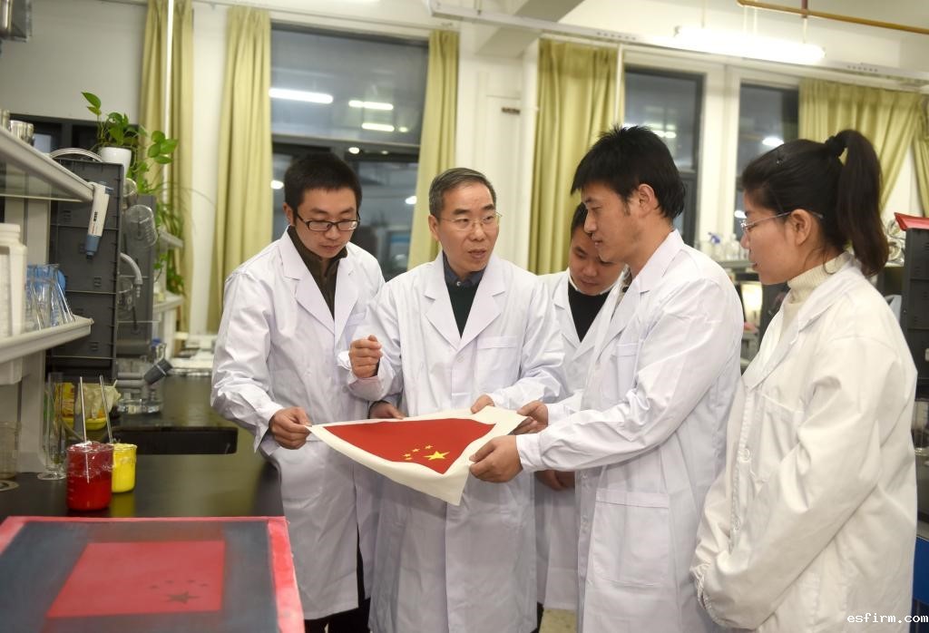 据了解,该面国旗以国产高性能芳纶为主要材料、采用曾荣获国家科技进步一等奖的“高效短流程嵌入式复合纺纱技术”,攻克了高模量差异纤维制备高品质纱线的技术难题,制备出高品质月面展示国旗面料;利用小分子调控技术实现了芳纶的结构调控及颜色构建,并在此基础上实现了极端紫外条件下优良的耐日晒牢度。同时利用曾获得国家科技发明二等奖的“优质天然高分子材料的超细粉体化及其高附加值的再利用技术”制备了微纳米蚕丝粉体,利用其与颜料粒子的协同作用,从本质上解决了极端条件下颜料热升华及热迁移牢度问题。通过以上技术攻关,实现了国旗在太空环境中耐受极端高真空、高低温循环,以及强紫外辐照等条件的高色牢度颜色构建的目的。