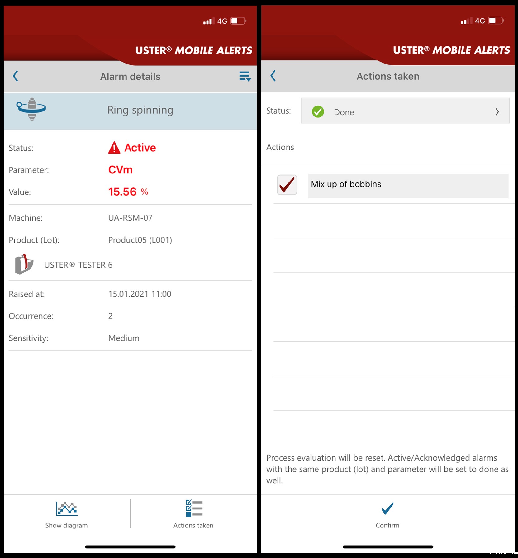 在引入乌斯特移动报警之前,纺纱工人很难看到警报。现在,由于可以立即发现问题并定位,使得质量管理变得越来越安全和容易。解决问题指南也是另一个非常受大众欢迎的功能,因为该应用程序证明了其在不同人员小组中的价值,例如实验室人员、维护经理以及承担专业质量监督职责的所有人员。