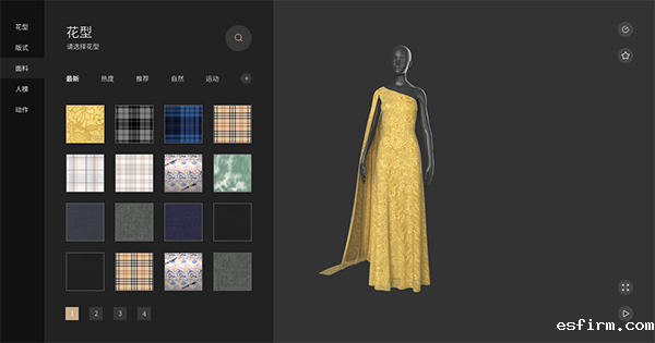 不仅如此,还可以结合版型通过物理引擎生成数字成衣,配合虚拟场景、虚拟走秀,直接进行预售,第一时间触达消费者。其次,对于面料企业而言,客户通过物理引擎,轻轻点击界面便可在系统中将纺织品与各种颜色、款型、图案及虚拟模特的动作相互匹配,大大的降低成本,缩短交付周期,同时也简化了制造商和买家之间昂贵且耗时的谈判过程。