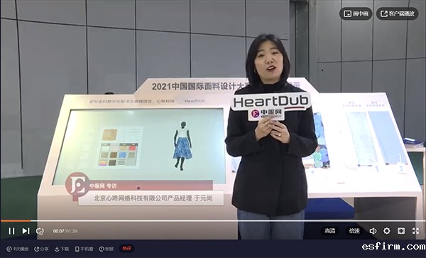 此次合作通过心咚科技提供的数字化解决方案,基于面料的真实材质数据,通过AI物理引擎实现面料的虚拟化,对“2021中国国际面料设计大赛”金奖、银奖、铜奖、最佳科技创新大奖、最佳色彩应用大奖、最佳纹样创意大奖、最佳材料应用大奖、最佳生态环保大奖和最佳市场应用大奖的15款获奖产品进行数字面料转化,转化成果以视频的形式呈现在中国纺织面料流行趋势时尚概念发布区中。展会期间,本刊记者采访了心咚科技产品经理于元尚,请她就心咚科技的产品研发及应用等进行了分享。