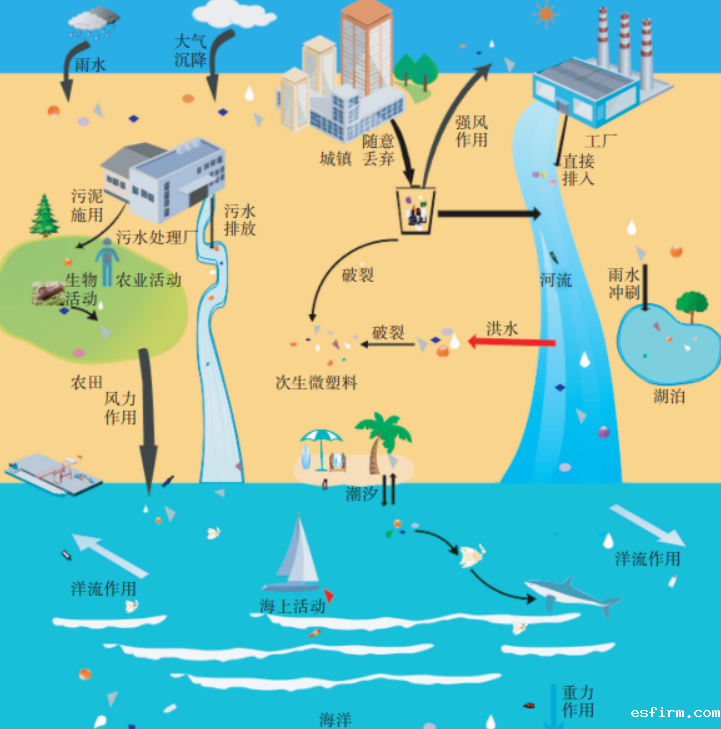 微塑料到底从何而来?联合国海洋环境保护科学问题联合专家组发布的《海洋中微塑料的来源、归宿和影响:全球评估》报告将微塑料分为初生微塑料和次生微塑料。初生微塑料是指直接生产出来的微塑料,如化妆品中使用的塑料小球等;次生微塑料是指由大的塑料通过物理、化学、生物等过程破碎而成的。其中,次生微塑料是海洋微塑料的主要组成部分。目前,微塑料广泛存在于人们的日常生活中,例如汽车轮胎与路面摩擦过程中产生的塑料颗粒、化妆品等个人护理品中的塑料微珠,洗衣废水中的微纤维等。