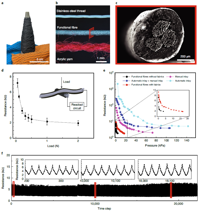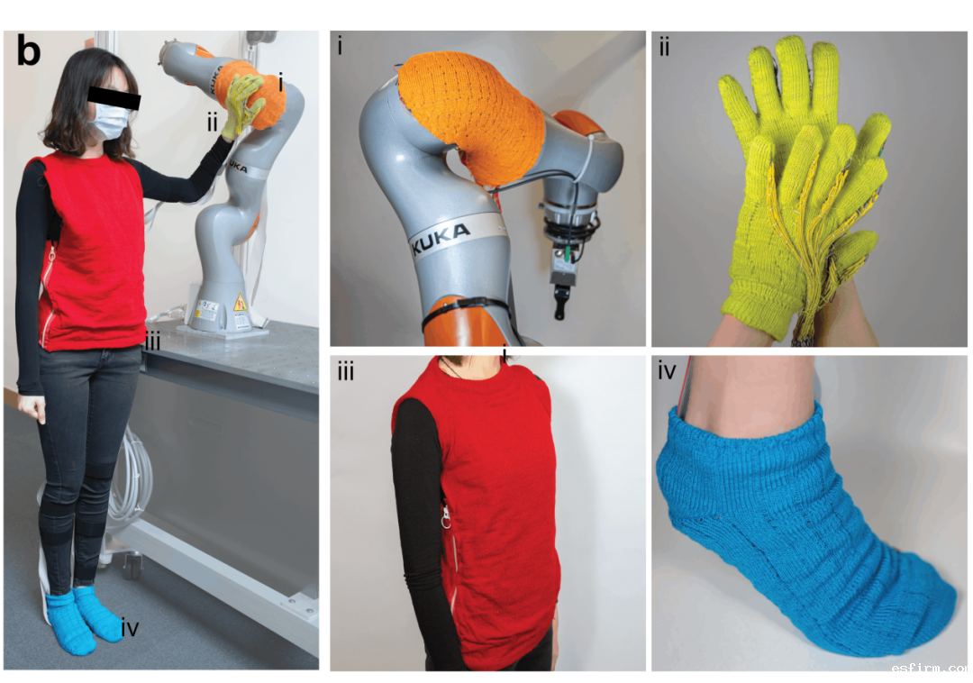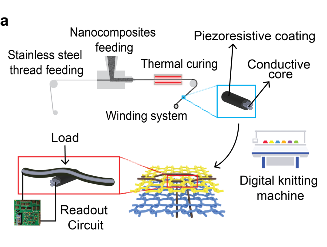 这款触觉纺织品使用了廉价的同轴压阻纤维(涂有压阻纳米复合材料的导电不锈钢线),依靠自动化涂层技术生产而成。由于使用了数字化针织技术,该功能性纤维可以被制作成各式各样的衣物。