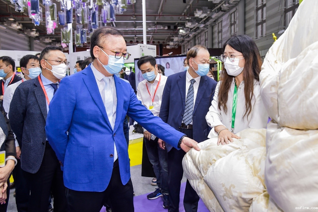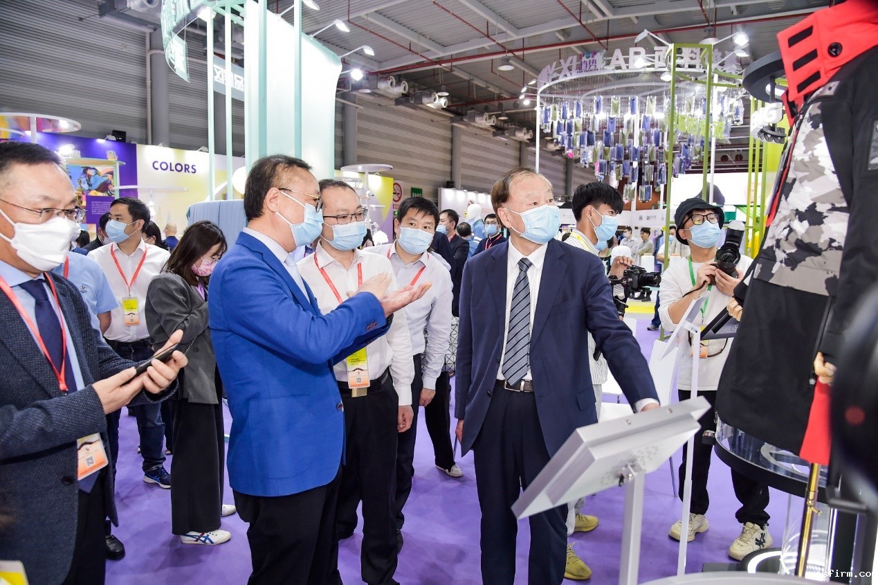 国际纺织制造商联合会主席、伟德app官方正版下载地址会长孙瑞哲,中国商业联合会会长姜明,伟德app官方正版下载地址副会长徐迎新,伟德客户端下载平台官网主任乔艳津,中国纺织工程学会理事长伏广伟,国家纺织产品开发中心主任李斌红,柯桥区领导赵如浪、陈豪、胡国炜、余建林等领导和嘉宾参观了展区。伟德客户端下载平台官网产业合作部项目总监陈佳从产品的设计创意、技术创新、生态环保等方面进行了专业的讲解。