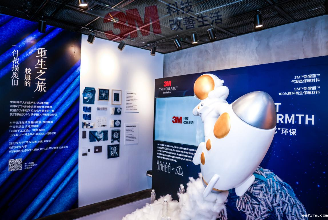 此次,3M?新雪丽?循环太空科技火箭装置惊艳亮相B区的科技焕新主题展区,3M?新雪丽?气凝态保暖材料采用了循环再生原料制成,其前身是最早源自于航天技术的气凝胶,结合新雪丽无纺技术,应用在了功能纺织品领域。相比与传统材料,它的暖重效率提升数倍,意味着可以用更加轻量化的材料,带来更高的保暖效果,更加值得关注的是,此材料还部分采用了GRS认证的环保材料,这也是3M一贯倡导的环保可持续的理念和价值观。